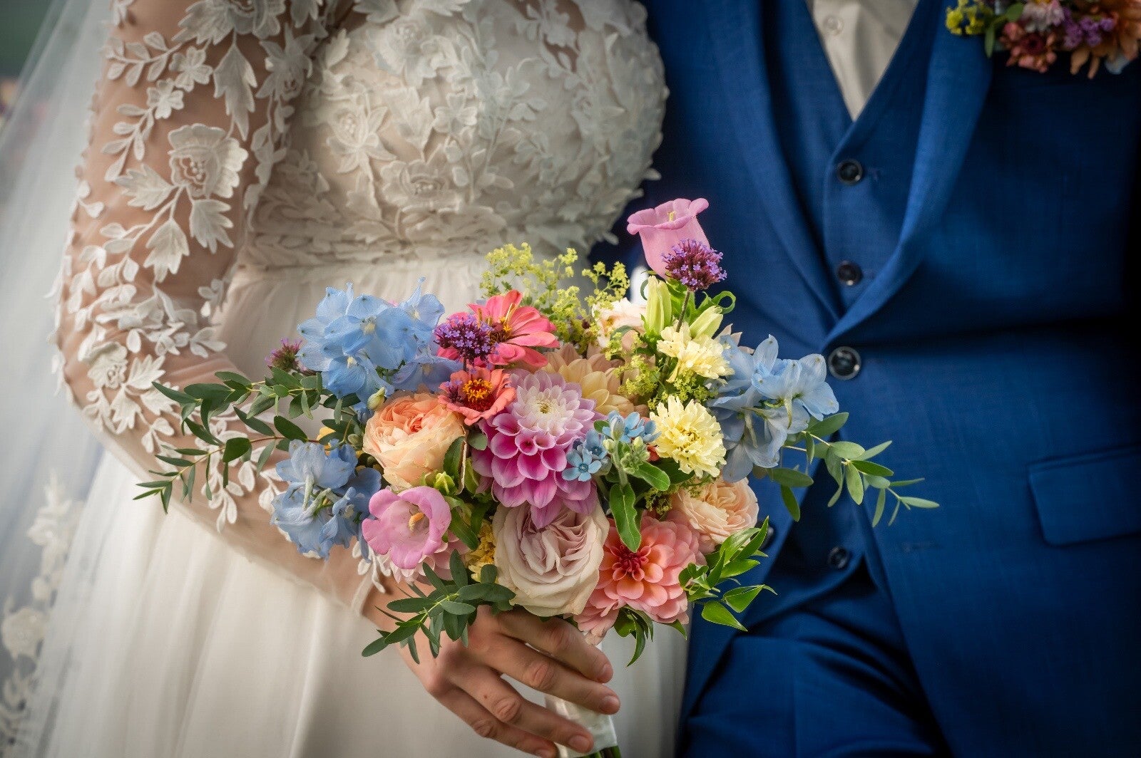 Voor bruidsparen die trouwen buiten het tuinseizoen (ongeveer november t/m mei) kies ik met zorg inkoopbloemen die qua stijl en uitstraling perfect aansluiten bij mijn eigen teelt.